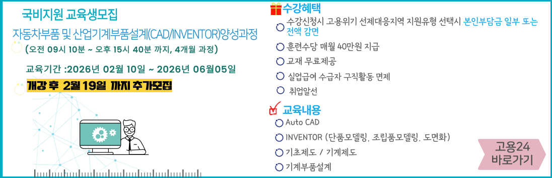과정명 :자동차부품 및 산업기계부품설계(CAD/… 더보기